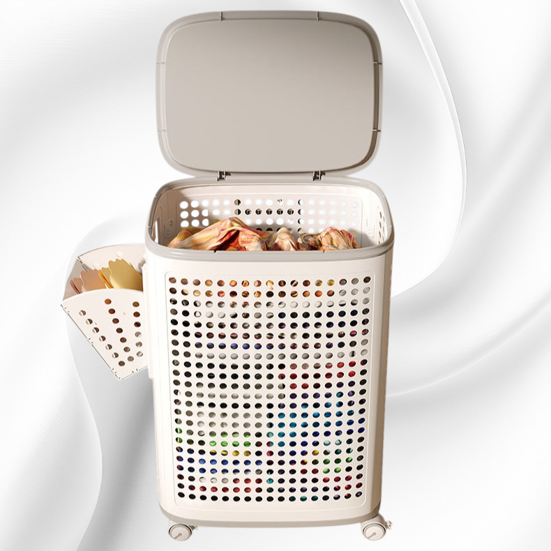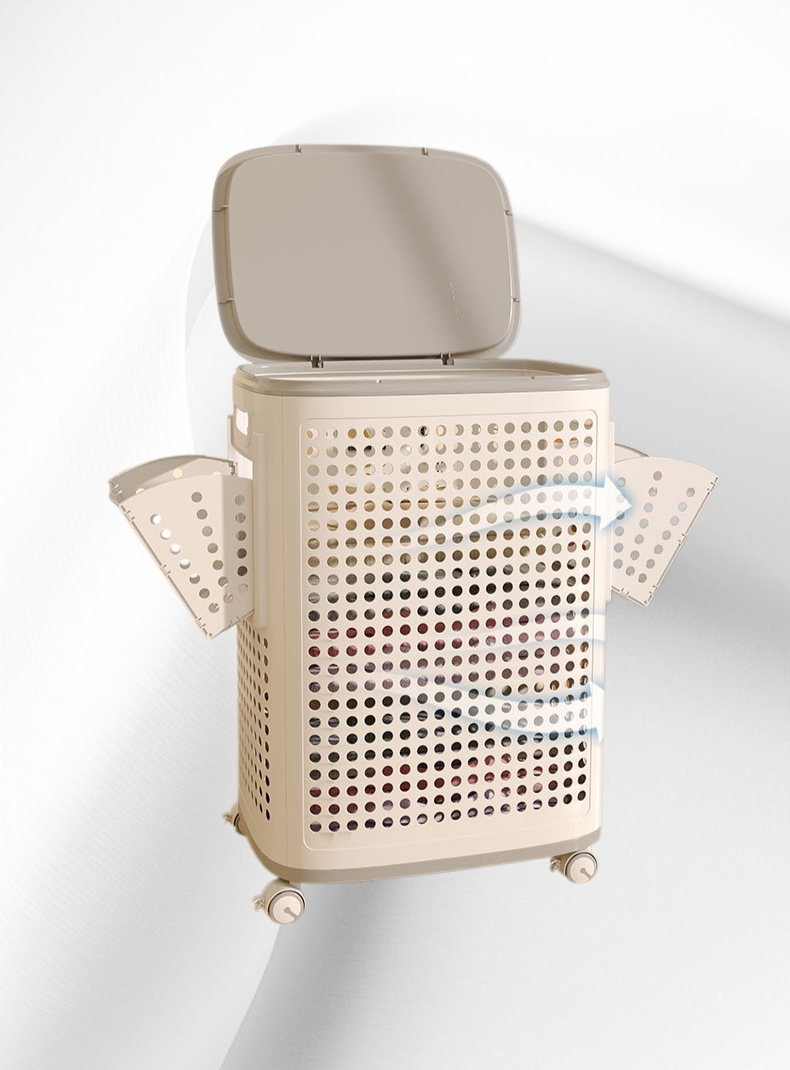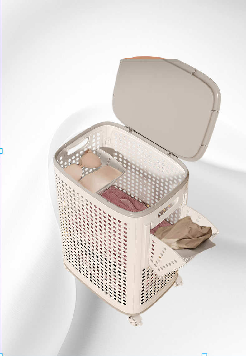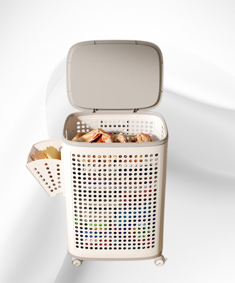 大容量設計で家族全員の洗濯物を一度に仕分け可能。持ち運びやすい取っ手付きで毎日の家事を効率化。通気性に優れた素材採用。