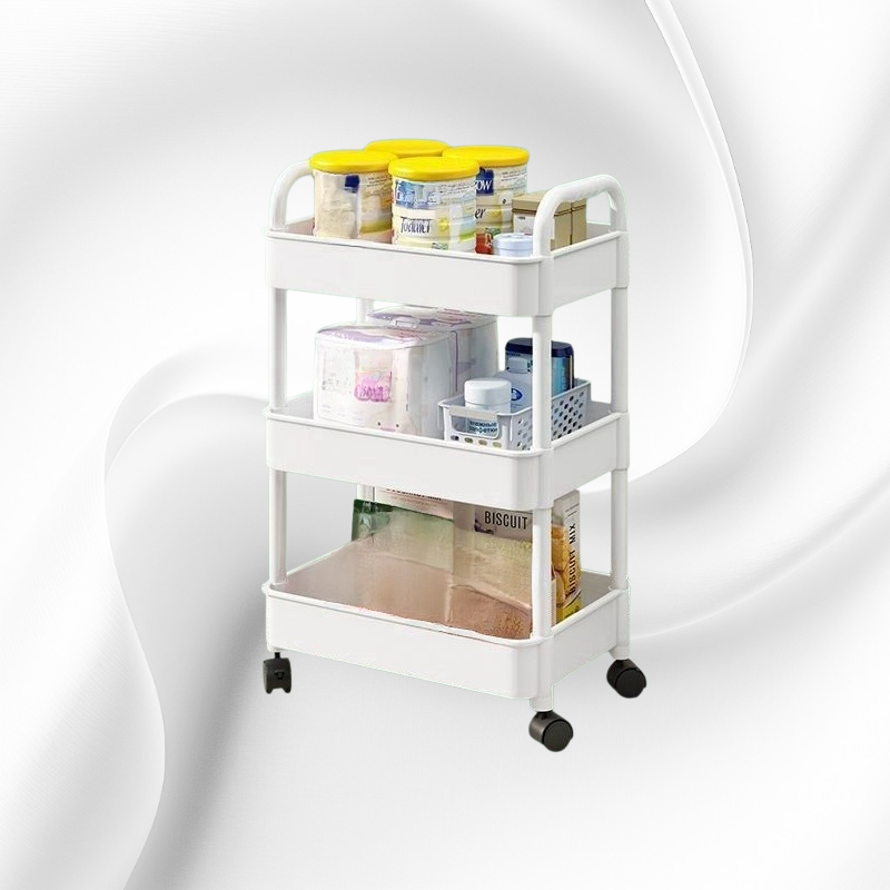 移動式ベッドサイドクリーム風多層ワゴン